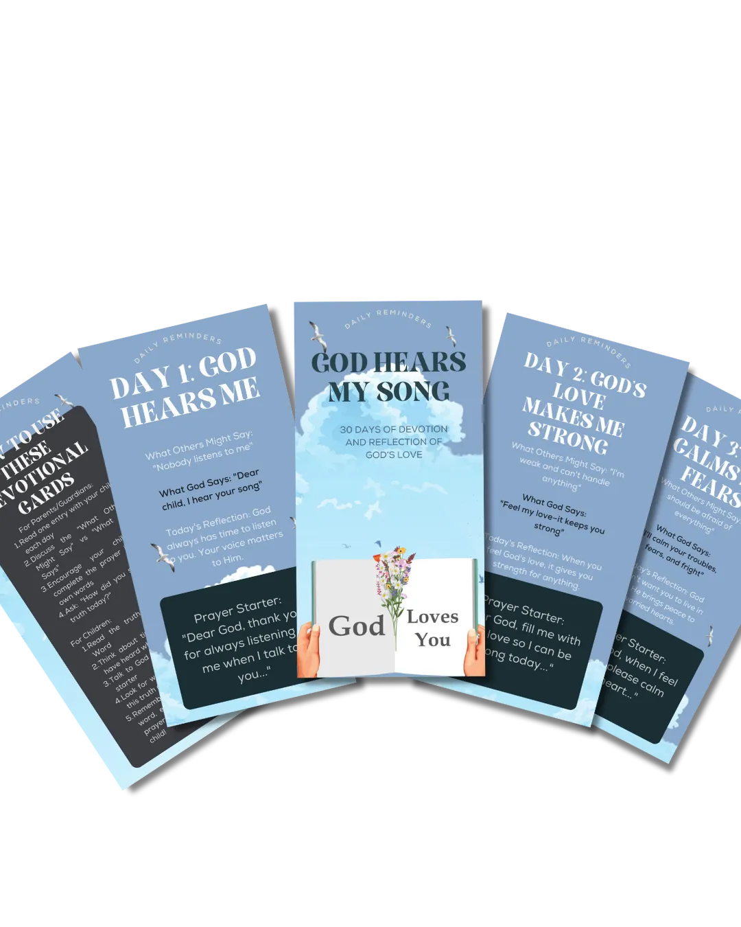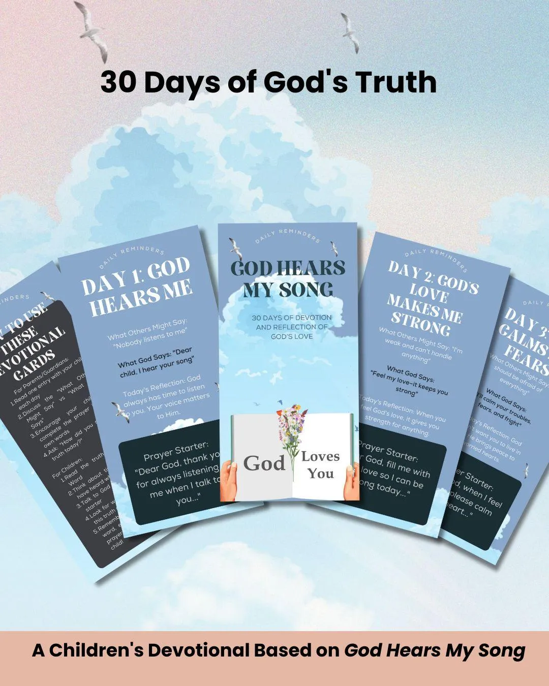 Help your child grow in faith with 30 daily cards that replace doubt with God’s truth, worry with His peace, and fear with His love.