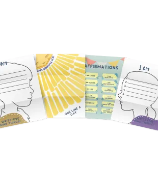 A simple 5-minute gratitude and affirmation journal— prompts that help kids start each day with thankfulness and see themselves as God sees them.